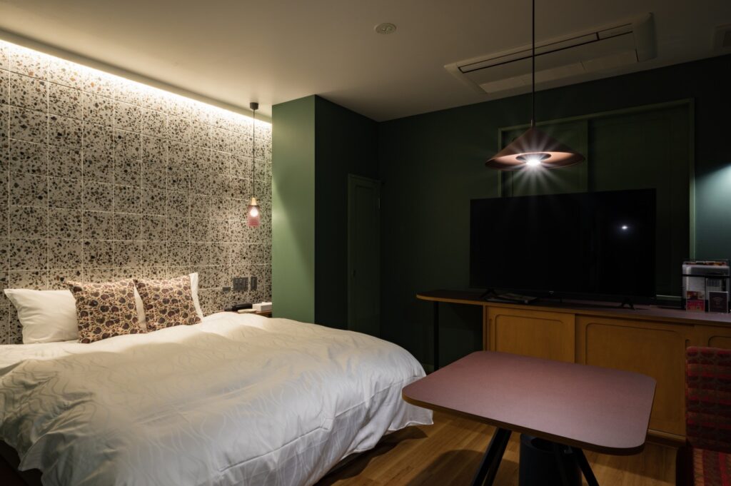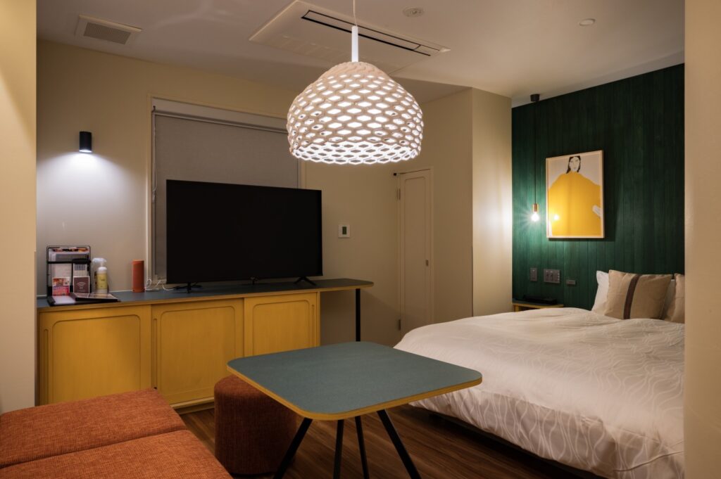 お部屋は一般的なビジネスホテルと比べても比較的広く、遊び心のある空間となっており、一日の仕事で疲れた身体を、ゆったりと癒していただけます。